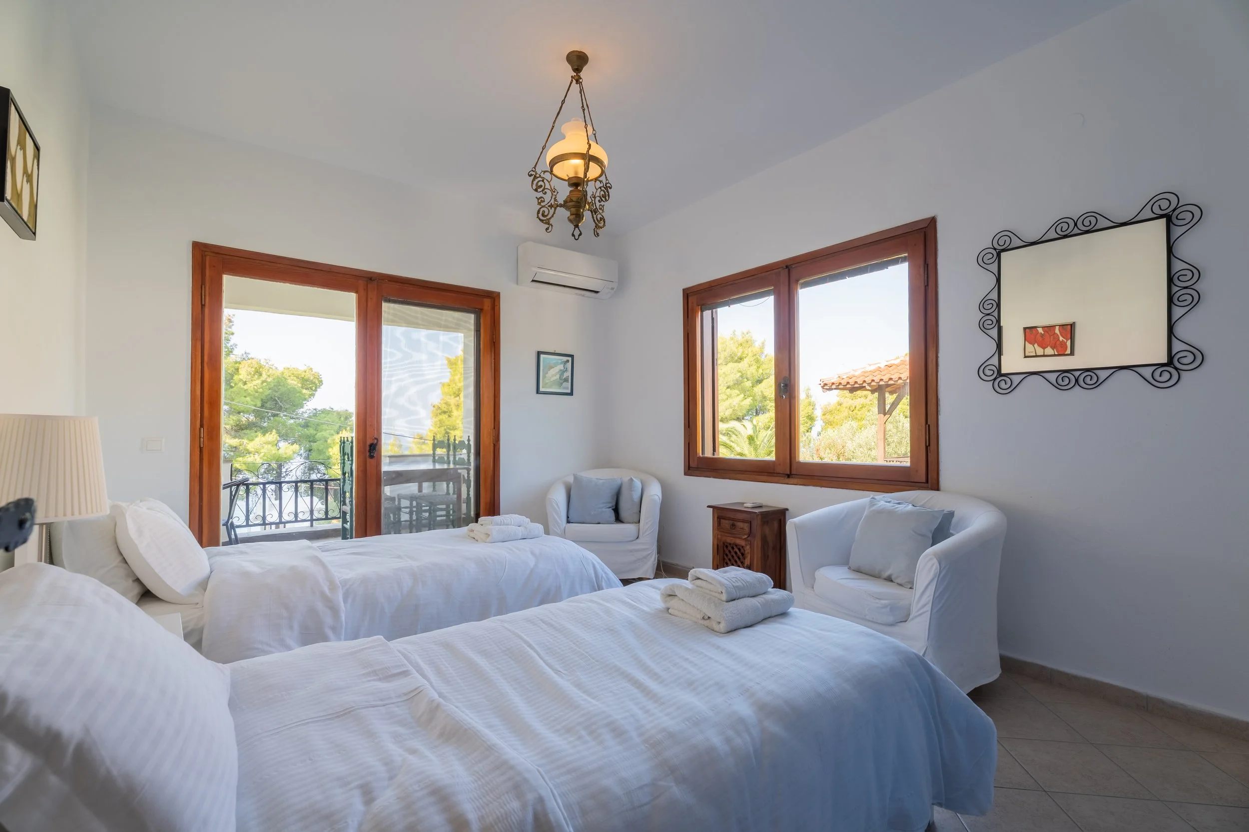 Rosemary’s House is located on Halkidiki’s second peninsula, Sithonia. It rests between the villages of Nikiti and Marmaras, perched on a cliff that overlooks the Aegean Sea. The closest airport is Thessaloniki (SKG).